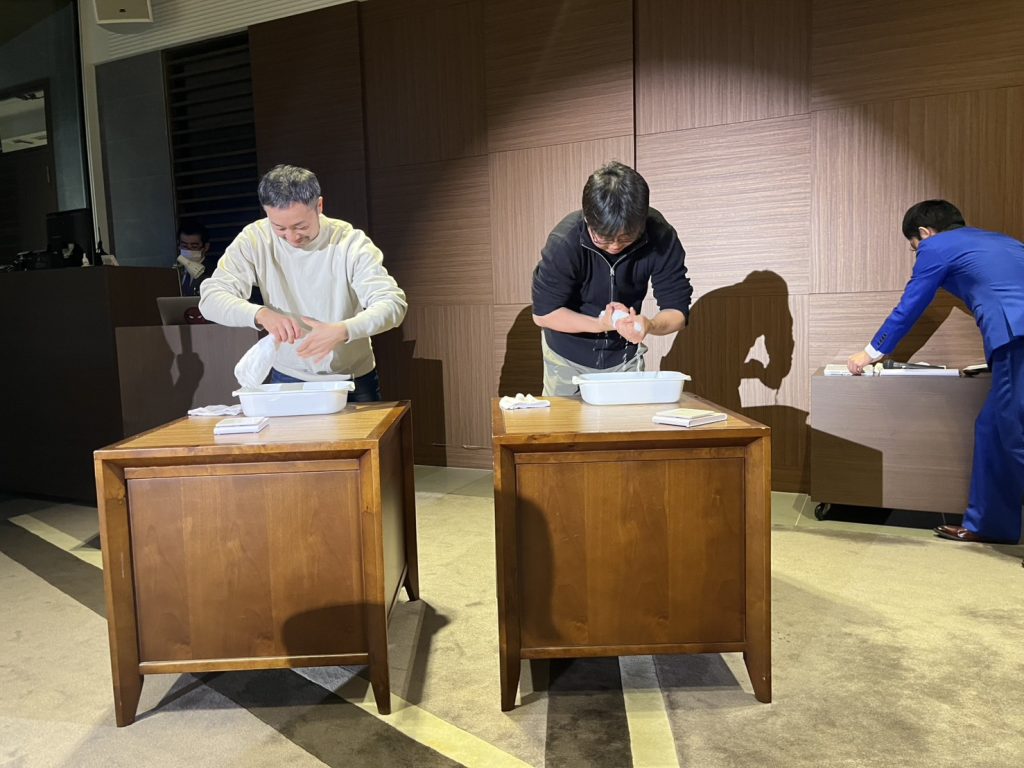 第1回戦は「絞って軽くしろ!タオル絞り対決!!」